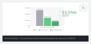 Pour exécuter ELK, vous devez aussi acheter l’infrastructure. Le coût total pour les logs reflète donc les frais d’infrastructure et de matériel7.